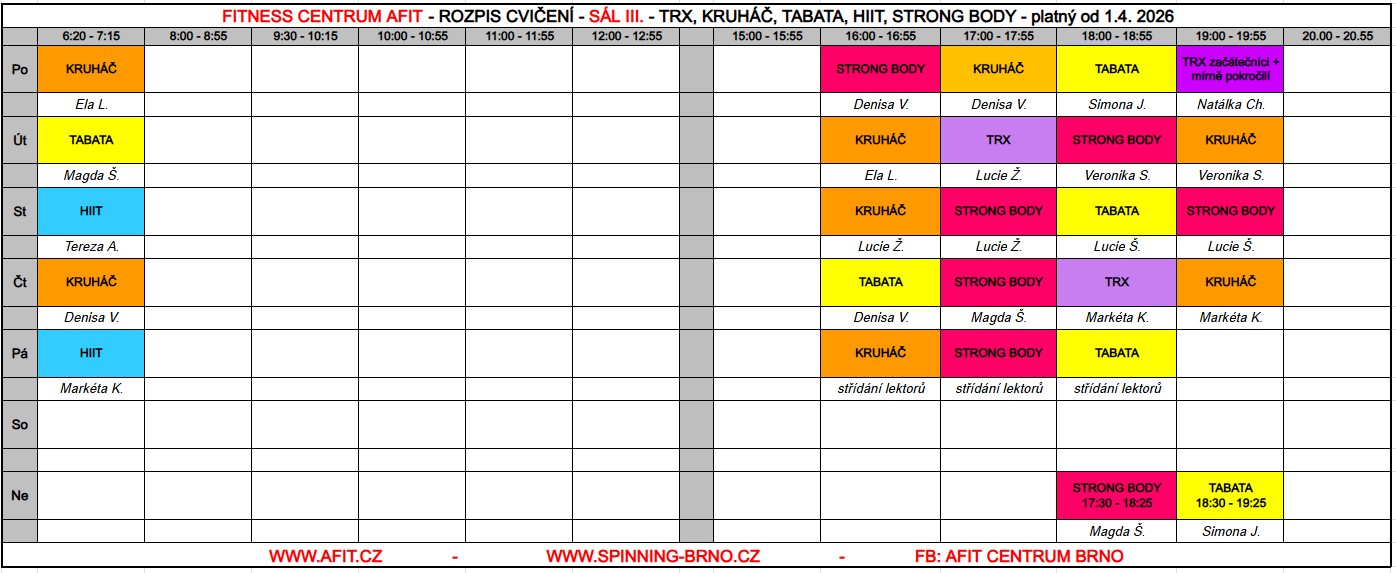 - Operator of the AFIT fitness center reserves the right to changes in schedule, including but not limited to unplanned substitution of group lesson instructors or an urgent cancellation of a lesson due to serious technical or health – related reasons.
