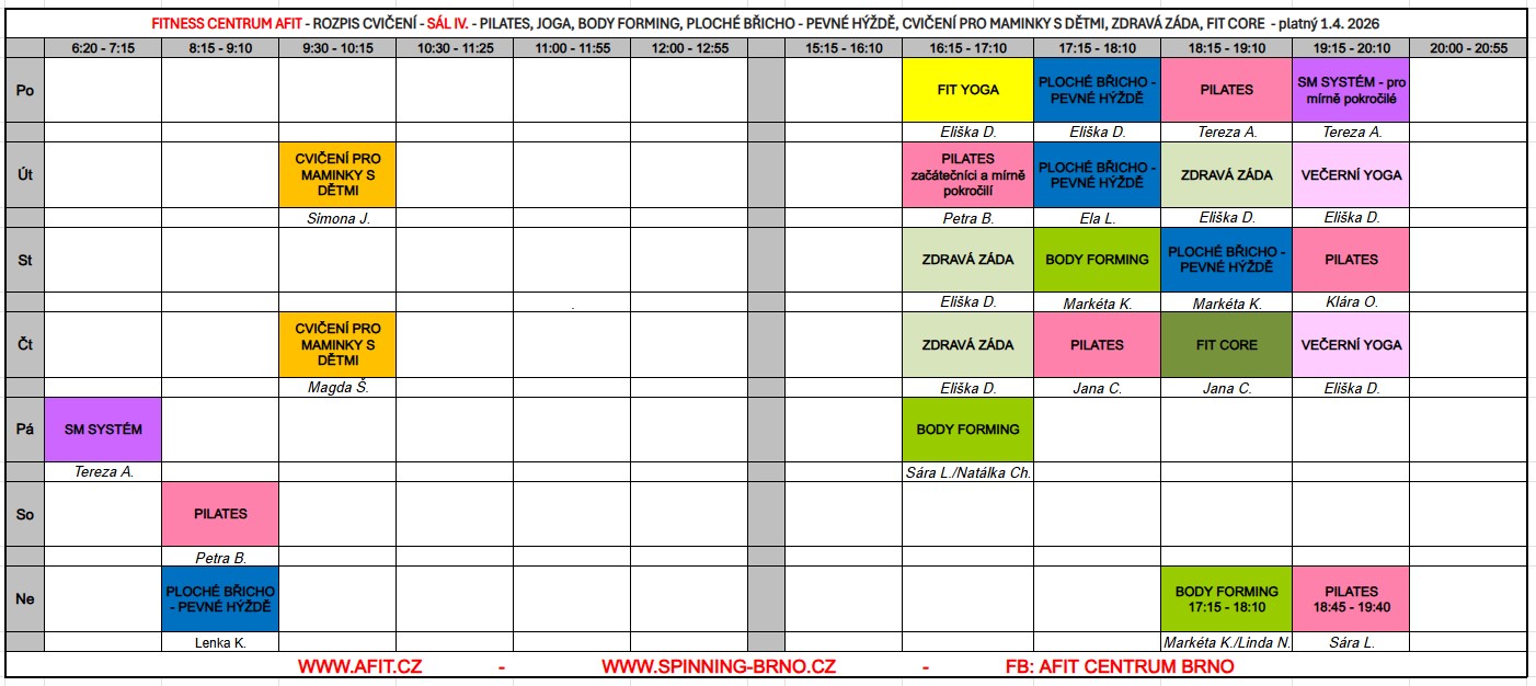 ROOM 4 – PILATES, EVENING YOGA, BODY FORMING, FLAT BELLY-FIRM BUTTOCKS, BODY FORMING, REHAB PILATES, FIT CORE, HEALTHY BACK