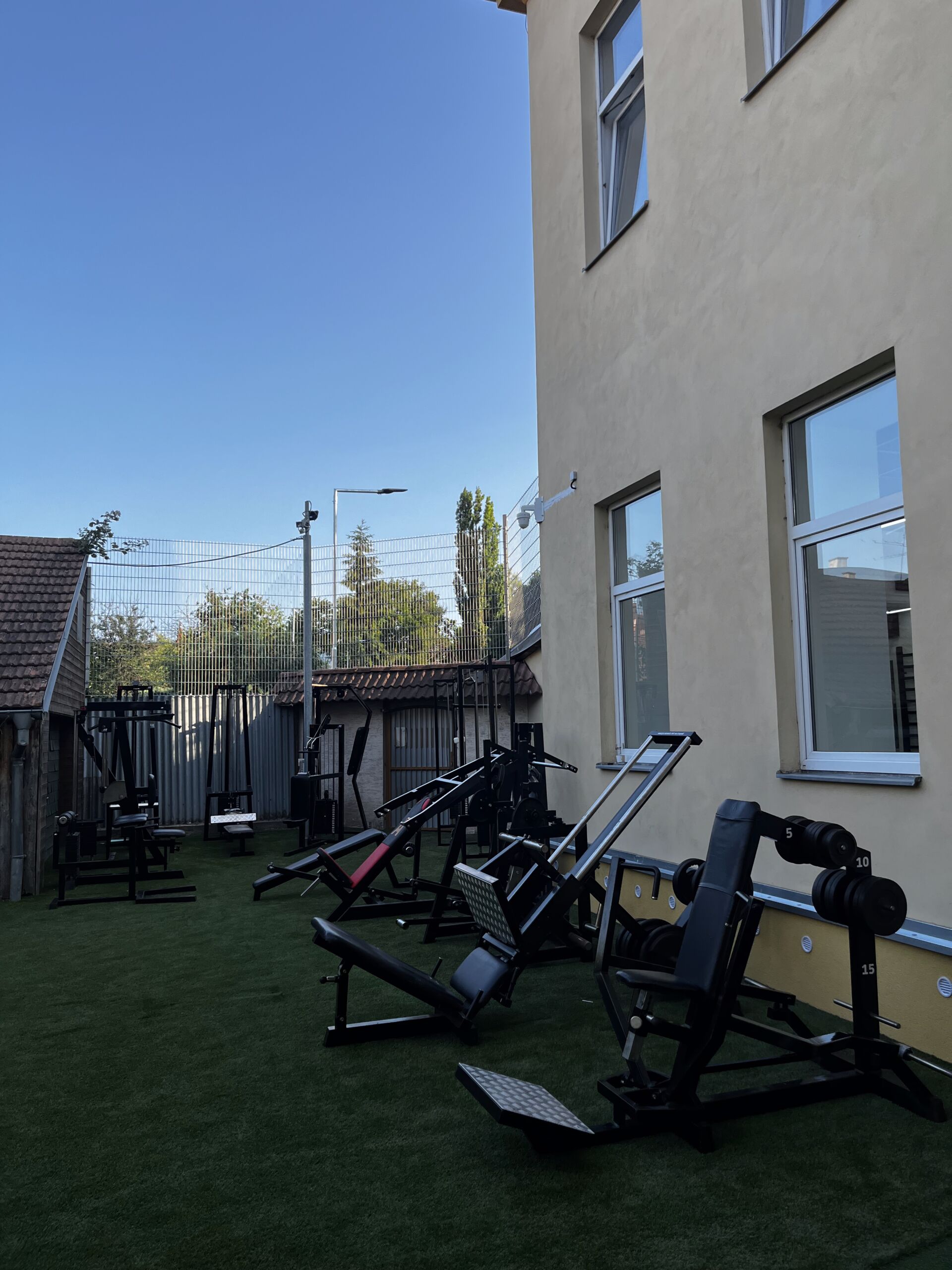 Plus, plenty of functional training equipment – TRX, expanders, wall ball, slam ball, kettlebells, gymnastic rings, resistance bands, power bags, jump ropes, strength ropes and mats. Outside, you will also find a cage, tires and training sleds, ideal for strength, interval or fitness exercises.