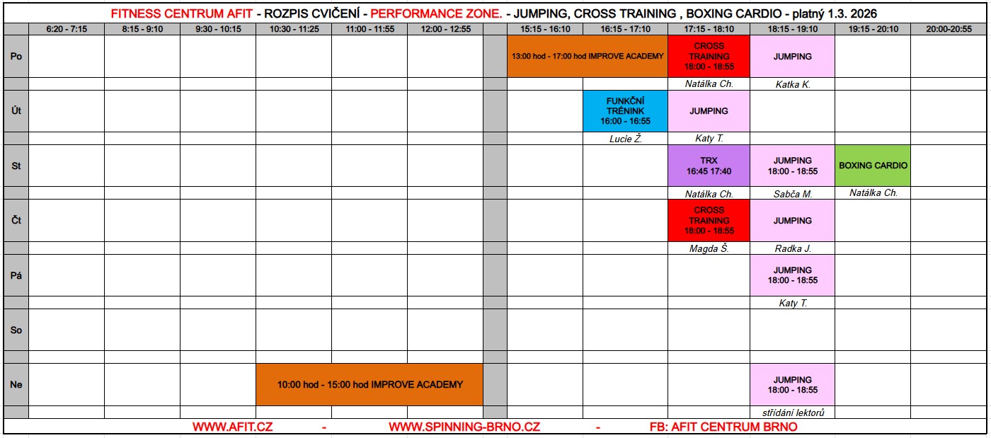 PERFORMANCE ZONE – JUMPING, CROSS TRAINING, BOXING CARDIO, FUNKČNÍ TRÉNINK