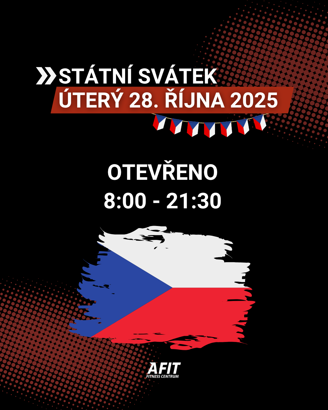 V úterý 28. 10. 2025 máme otevřeno od 8:00 do 21:30 – přijďte si dát trénink, který vám dodá energii na celý den.