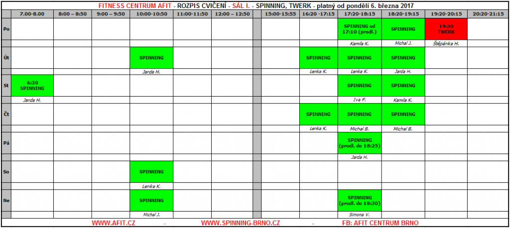 Rozpis lekcí platný od 1.prosince