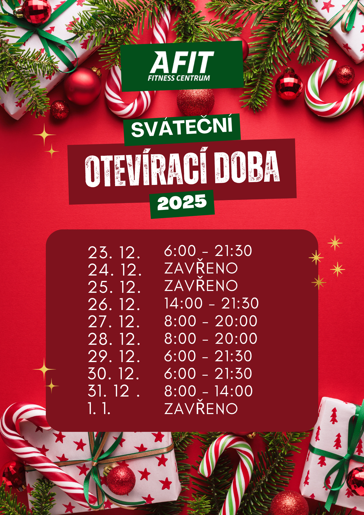 Máme pro vás otevřeno i během svátečního období, abyste mohli zůstat v pohybu a udržet si energii i mezi cukrovím a dárky!