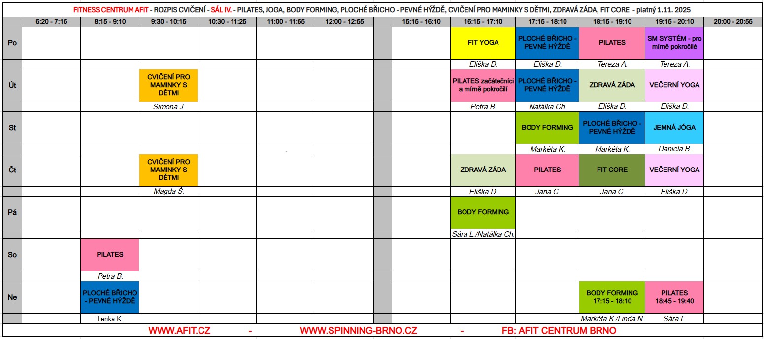 ROZPIS SÁLOVÝCH LEKCÍ OD 1.ŘÍJNA 2025
